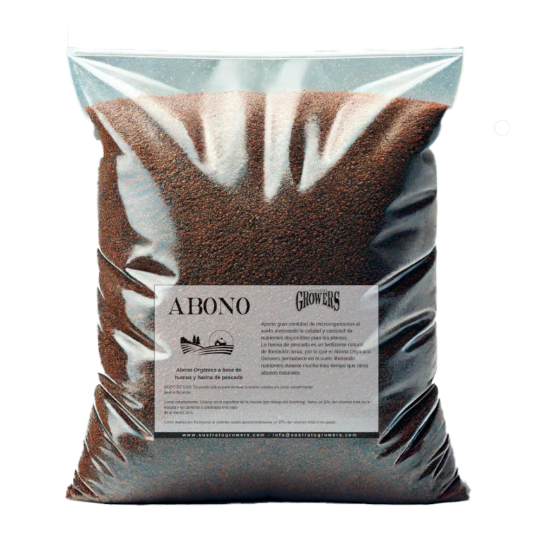 Aporta gran cantidad de microorganismos al suelo mejorando la calidad y cantidad de nutrientes disponibles para las plantas. La harina de pescado es un fertlizante natural de liberación lenta, por lo que el Abono Orgánico Growers permanece en el suelo liberando nutrientes durante mucho mas tiempo que otros abonos naturales.