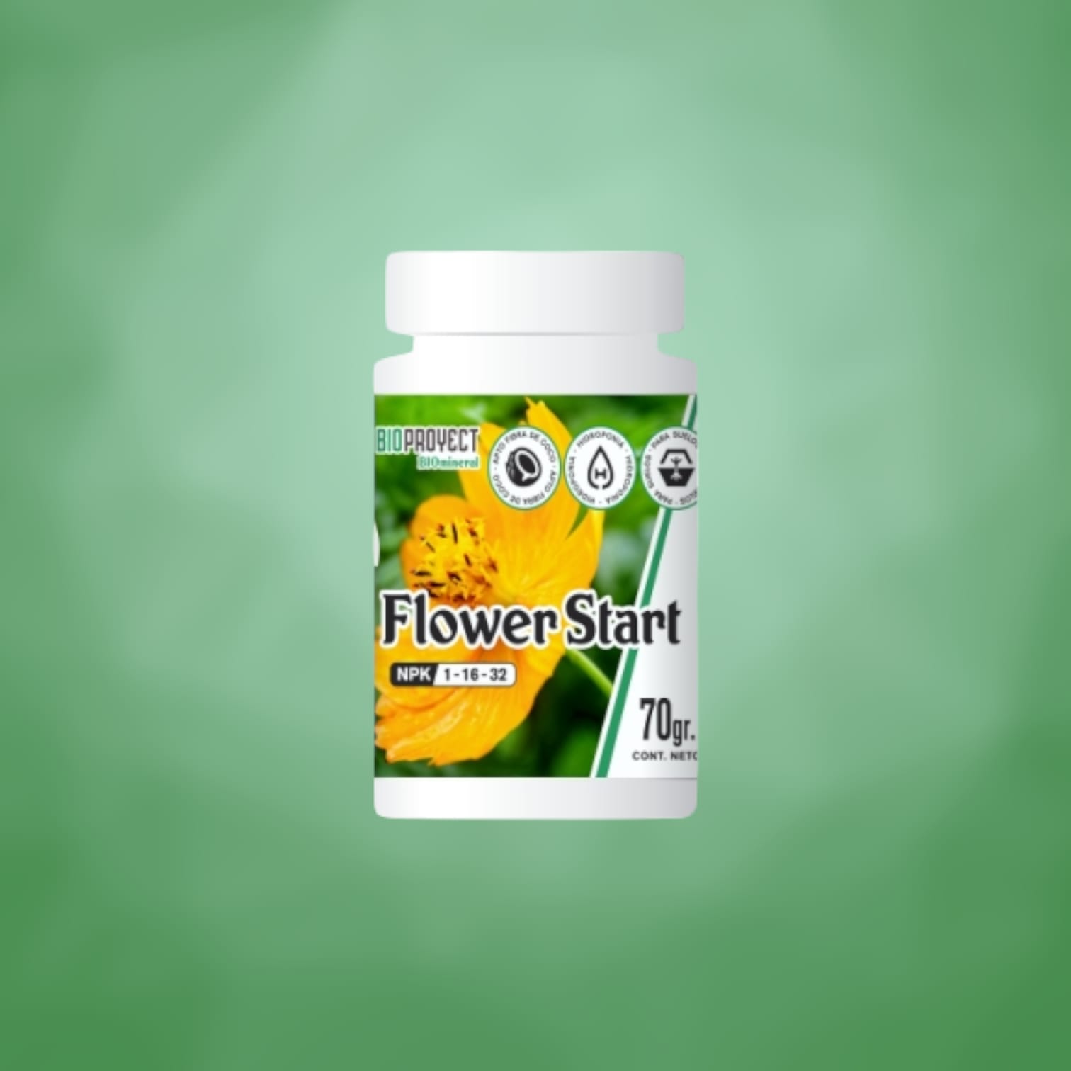Fertilizante para plantas en polvo, rico en nitrógeno fósforo potasio y azufre. Flower start es un iniciador de la floración altamente concentrado que aporta niveles ideales de nitrógeno fósforo y potasio. Conseguirás un arranque de la floración mucho más estimulado. Induce un mejor comienzo de la floración. Acelera la aparición de las primeras flores. Favorece la fotosíntesis. Importante rol en el metabolismo de la planta.